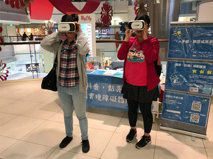 1. Introduction to Syin-Lu - 10 minutes 2. VR experience - 20~30 minutes (depend on number of participants) 3. Other disabilities hand on - 10 minutes 4. Discussion - 10 minutes