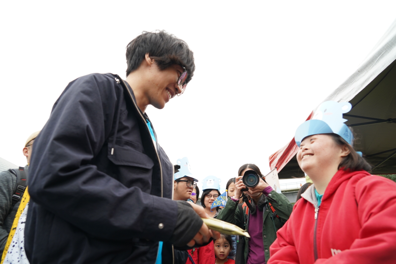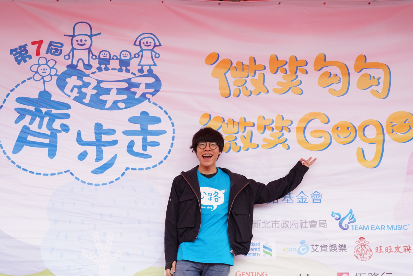 3月23日早晨,上千人在大臺北都會公園幸福水漾園區齊健走,由在台北、高雄巨蛋開唱的微笑大使盧廣仲領軍開走。他與同隊隊員們互相加油打氣,配合彼此的步伐,一起慢步完成3公里的路程,以及趣味闖關。