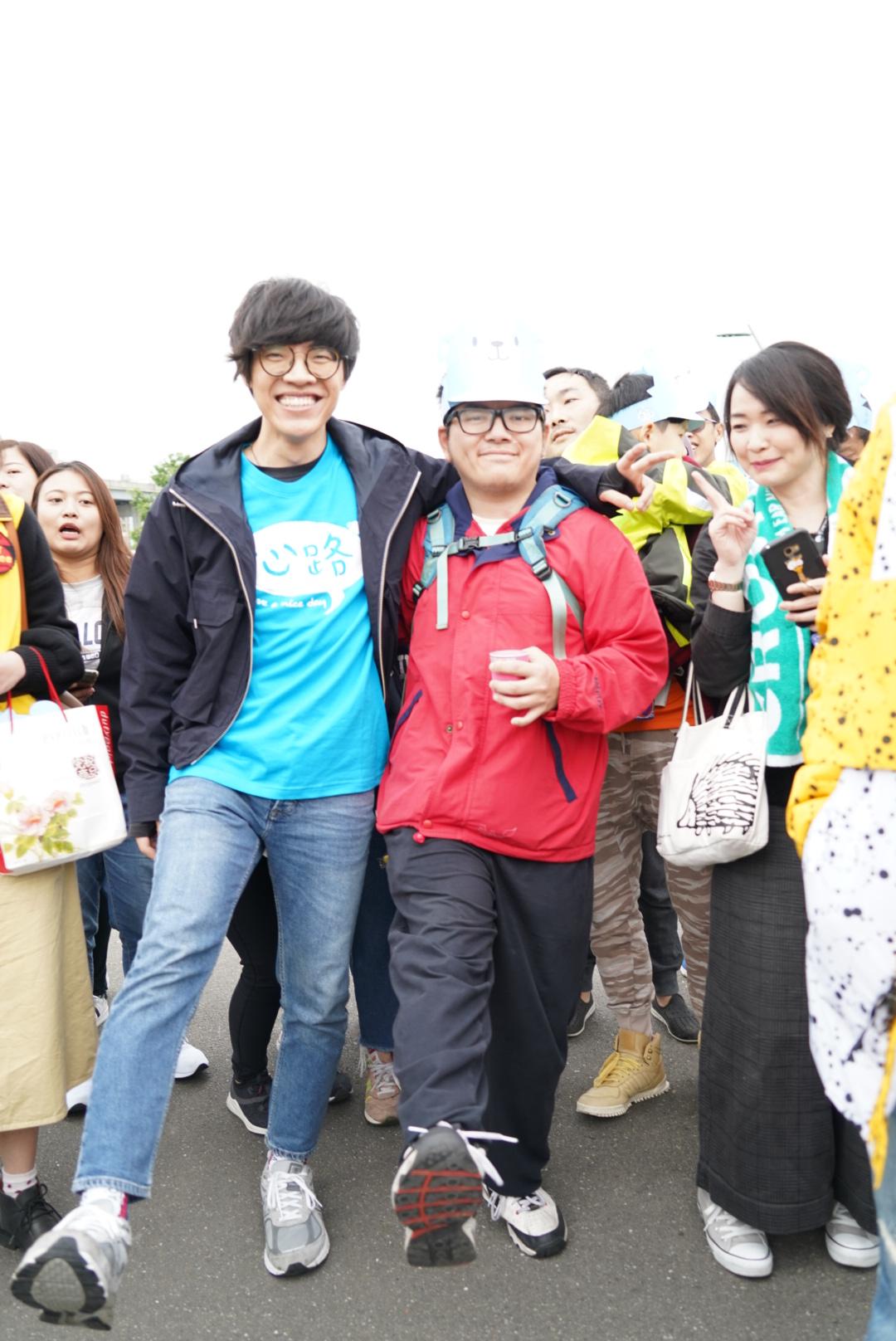 盧廣仲(左)與阿超(右)健走完3公里。