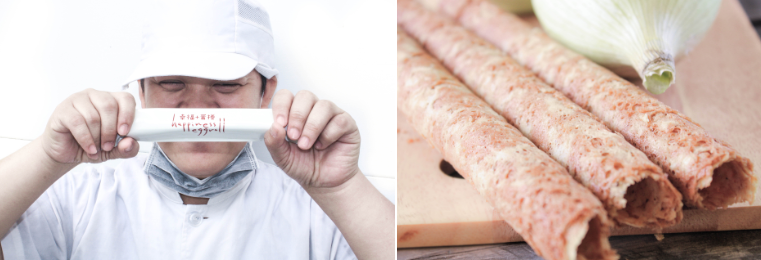 一口蛋捲吃得到洋蔥的甘甜和黑胡椒的香味,由智能障礙青年親手製作,是最溫暖有意義的一份禮。 林園地區因濱海地形土質偏鹹,