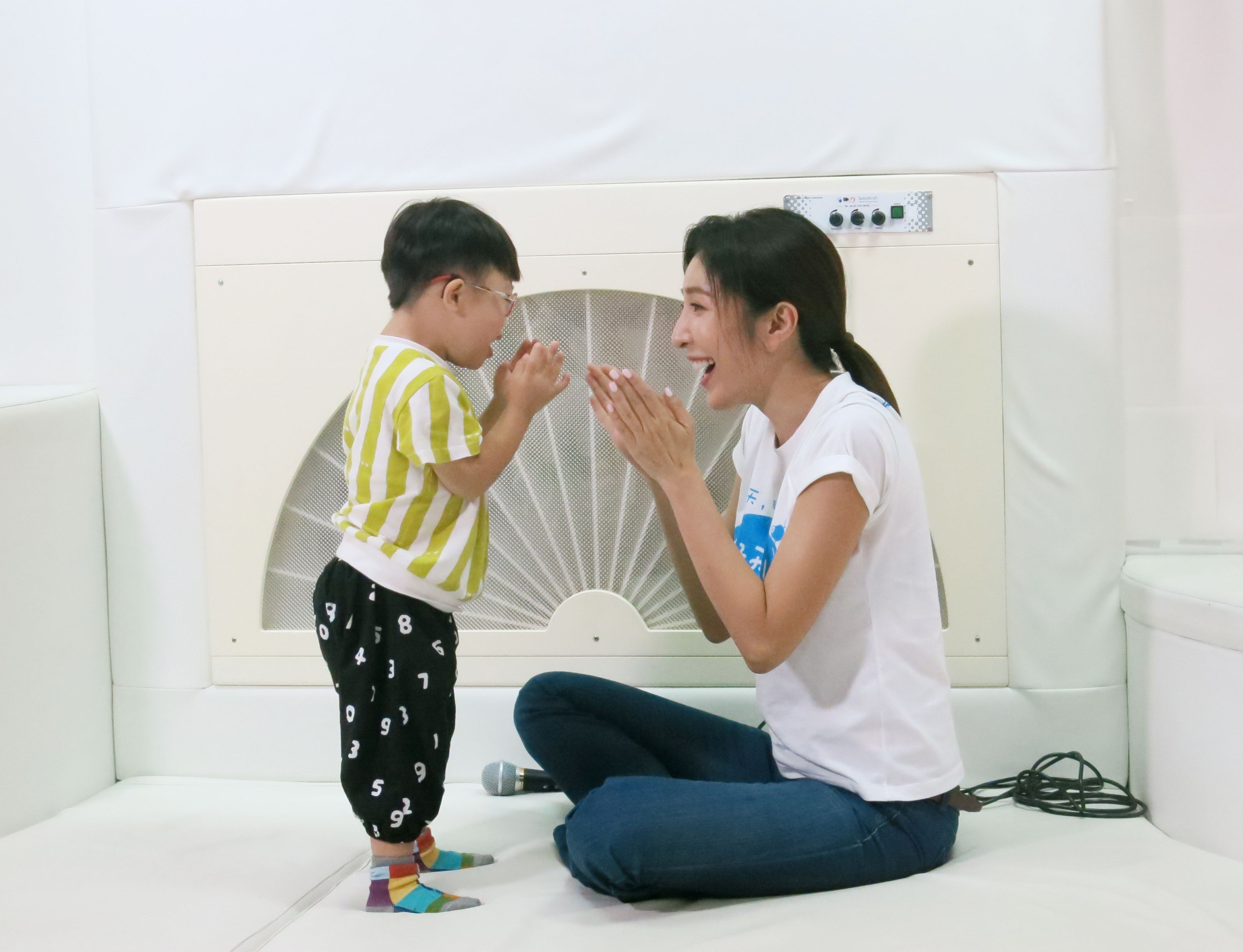 楊謹華與睿睿開心拍手玩耍!