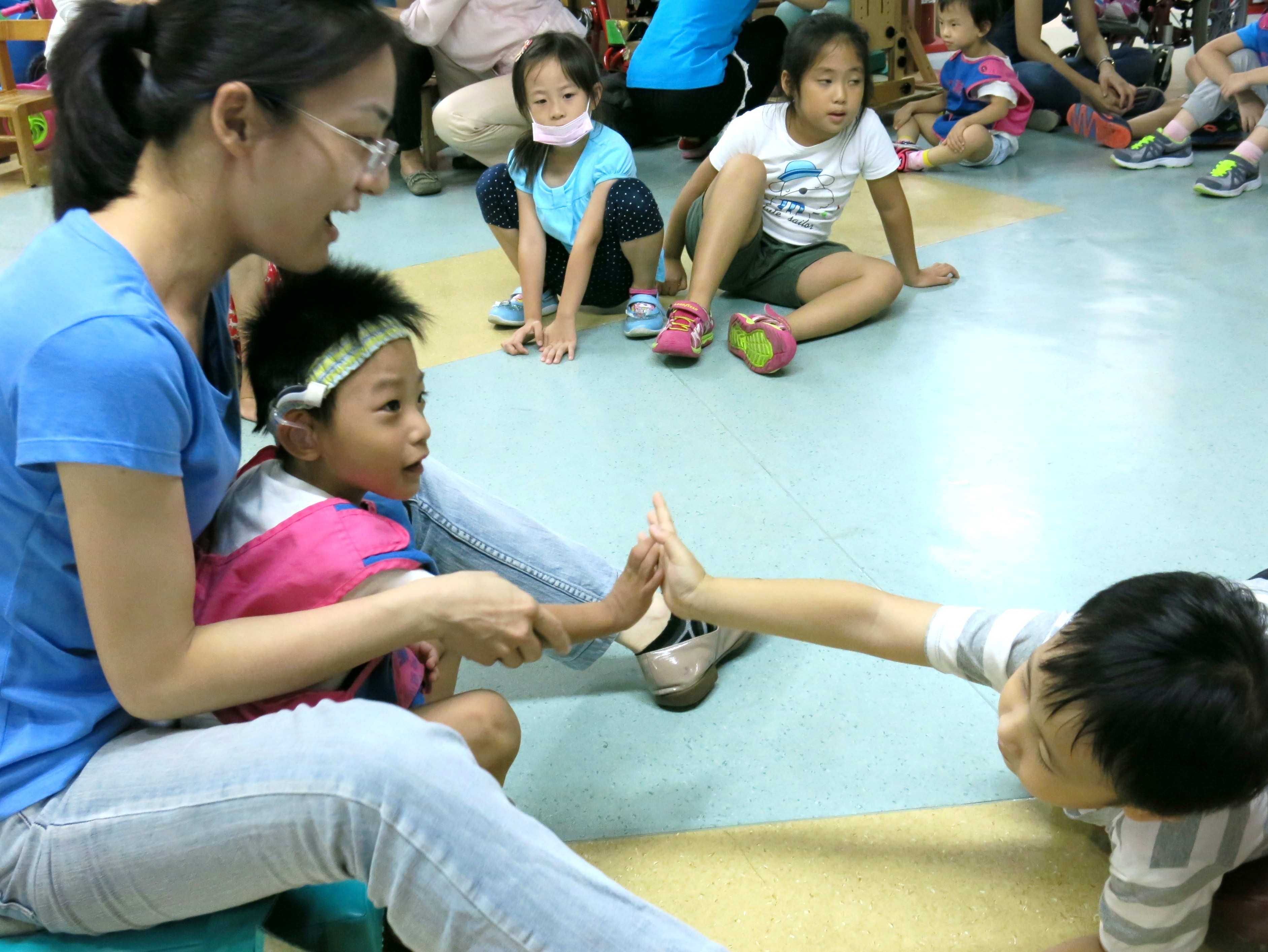 一個下午,心路位於文山區的萬芳發展中心鬧哄哄。幼兒園的孩子們來,跟心路早療服務的孩子們一起玩耍。